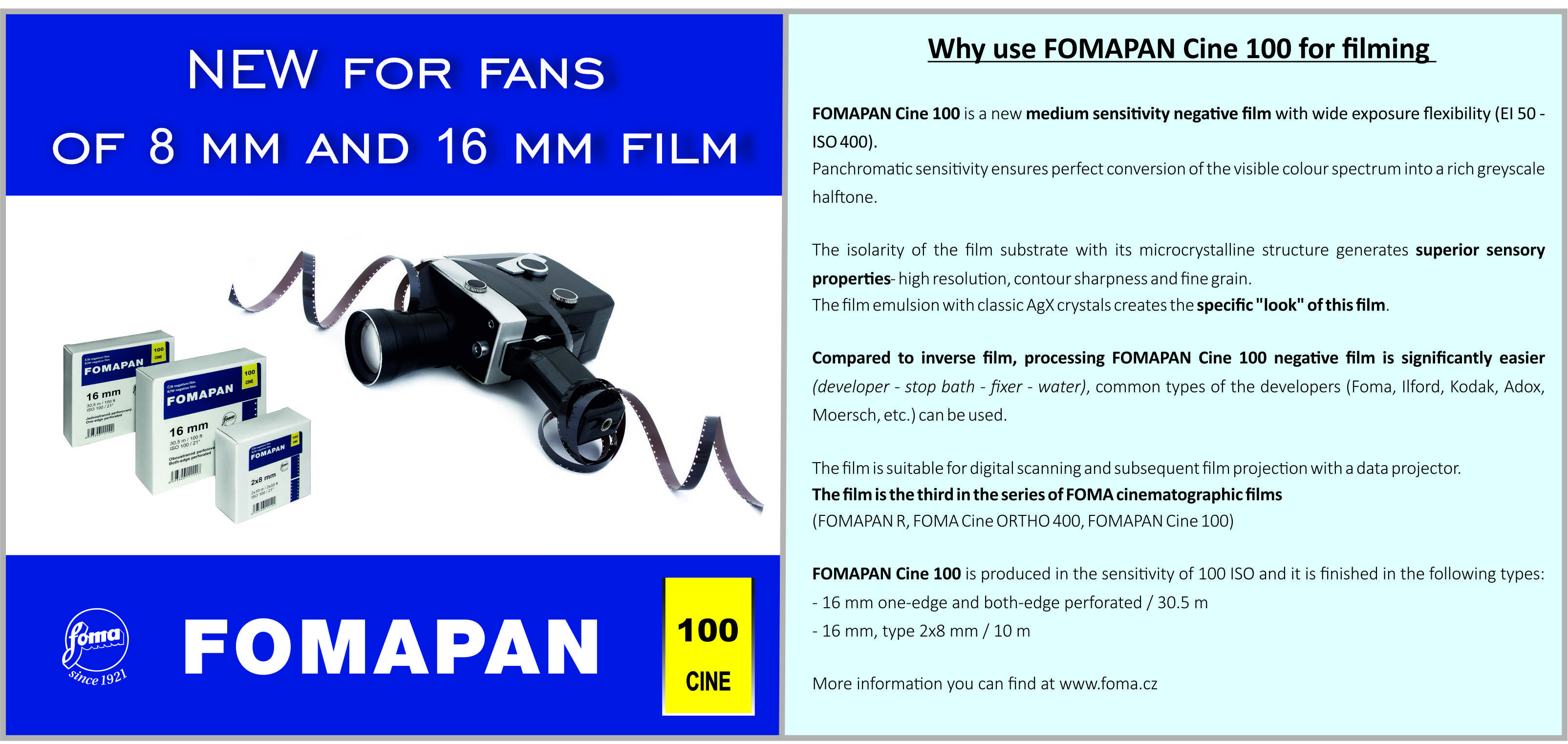 The new Fomapan Cinema 100 film is the third in the series of FOMA cinematographic films.